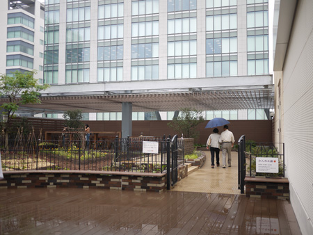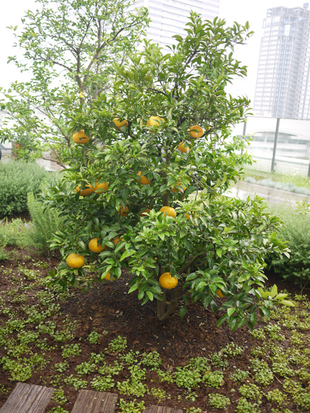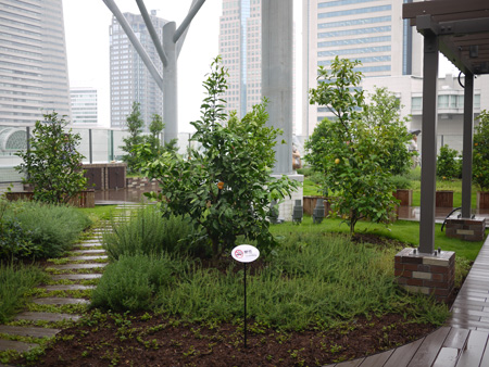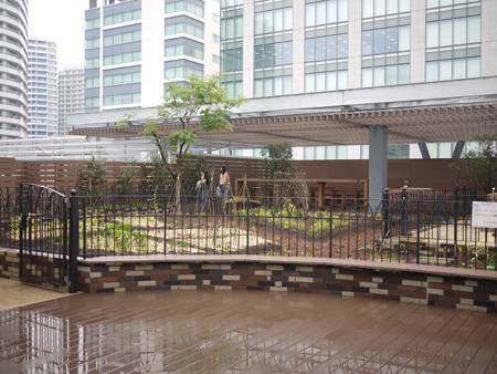この庭から見る景色が、横浜のシンボルビルに囲まれていい感じなのですが、