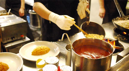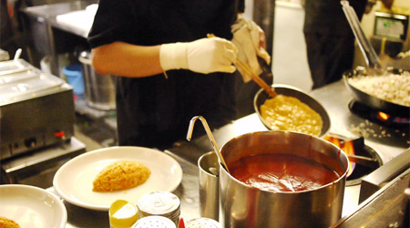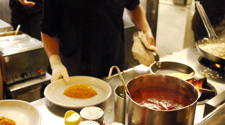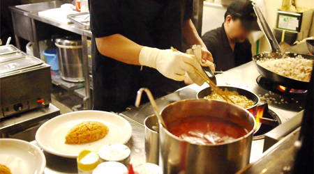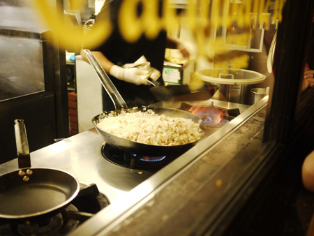 こんな沢山ライスが入ったフライパンをふるいながら混ぜ混ぜするんです。