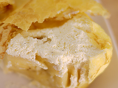 半額物なのにクレープの皮は全然しなっておらずフォークでぷっつりと切れます。