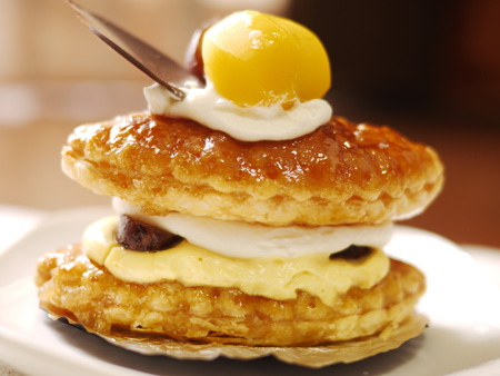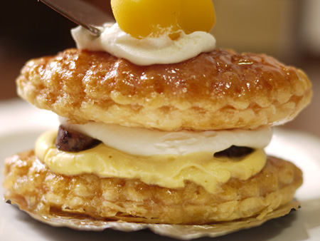 キャラメルの周りにはバニラムース、その上に優しい甘さの生クリーム。