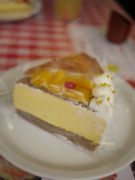 しかしタルト台はハードビスケットのように固く、フォークで切れない(笑)