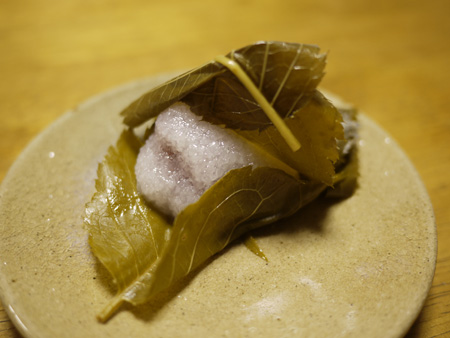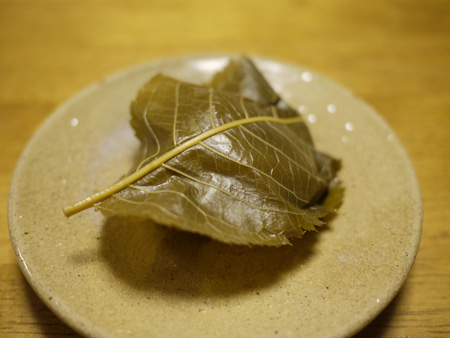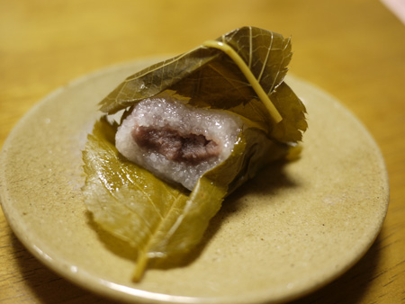しょっぱい桜の葉と一緒に食べると風味も味もすごーく良くなって・・・たまらないですね!