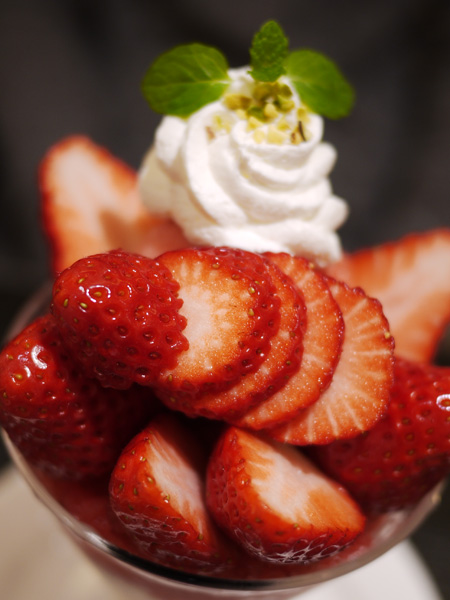 たっぷりのみずみずしい苺に中には少ししゃりっとしたソフトクリームがたっぷりです。