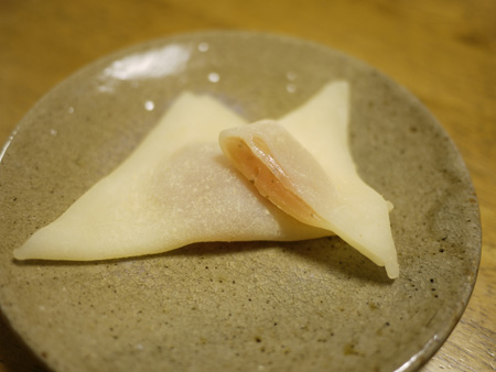 ほんのりピンク色の餡には刻んだ桜の葉が入ってます。