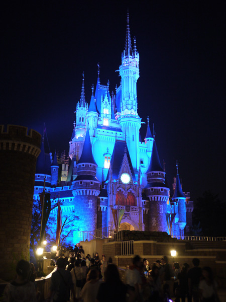 シンデレラ城のライトアップ、ちょっと控えめな気がするのは節電の影響かな?