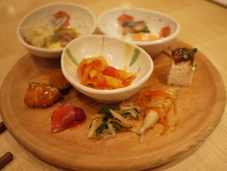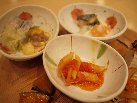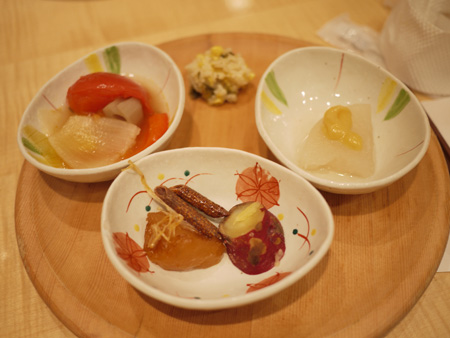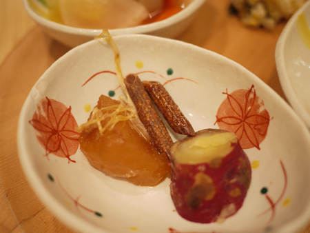 左端にちょろっと写ってる、大根のラズベリー漬け(?)なんて変わったものも。