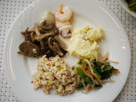 4種のキノコのマリネ、小松菜のナムル、シーフードマリネは常連なのか?