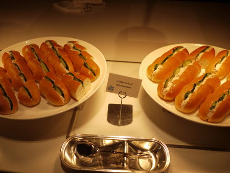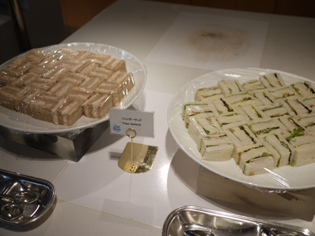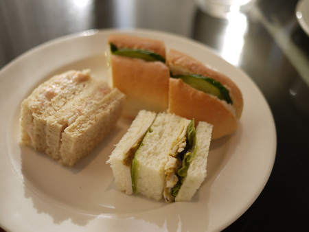 右のサンドイッチはタンドリーチキンで左は鮭とジャガイモのしょっぱいサンドイッチでした。