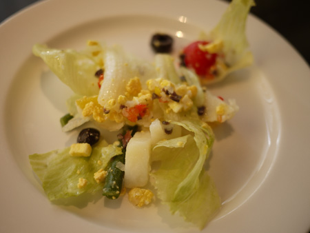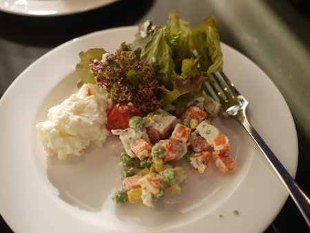 コーンとチキンのサラダ、美味しい。甘味の口直しにもいいかも!