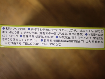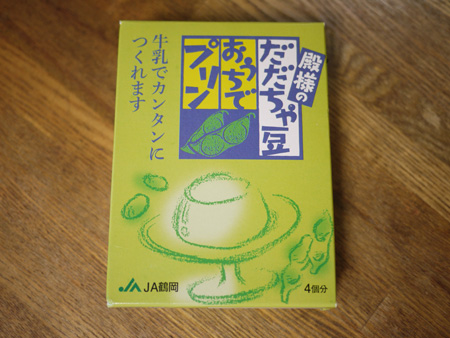スーパーのワゴンで売られていた、だだちゃ豆が作れるプリンの素。