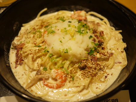 さて、メインの「湯葉と海老と聖護院蕪おろしのクリームスープスパゲッティー」です。