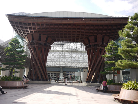 壮大すぎる金沢駅の門。