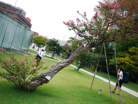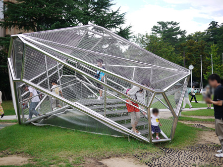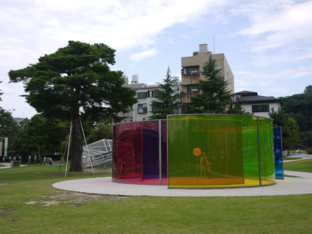 美術館の庭にあるカラーフィルムのようなオブジェ。