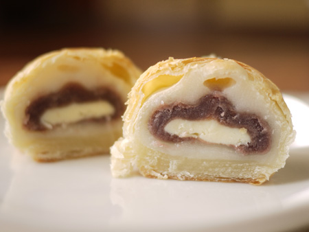 「ふらのワインを使った餡とチーズを大福に入れ、パイで包んでさっくりと焼き上げました」
