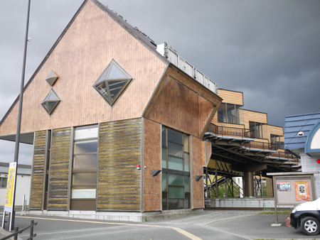 富良野からのバスで美瑛駅前に着いたら、連絡橋を渡って美瑛駅正面へとまわります。