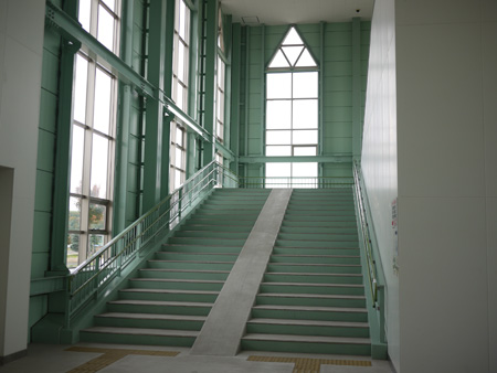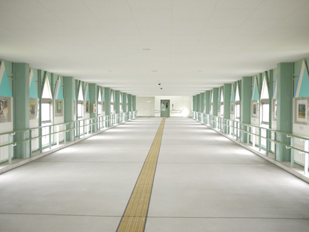 連絡橋の中は誰もいなくて、自分の足音が響き渡ります。