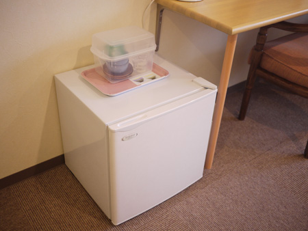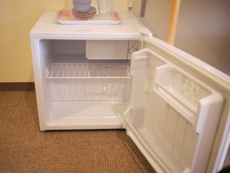 冷蔵庫はコードが抜いてあるので、使う際はコードを指して電源を入れます。