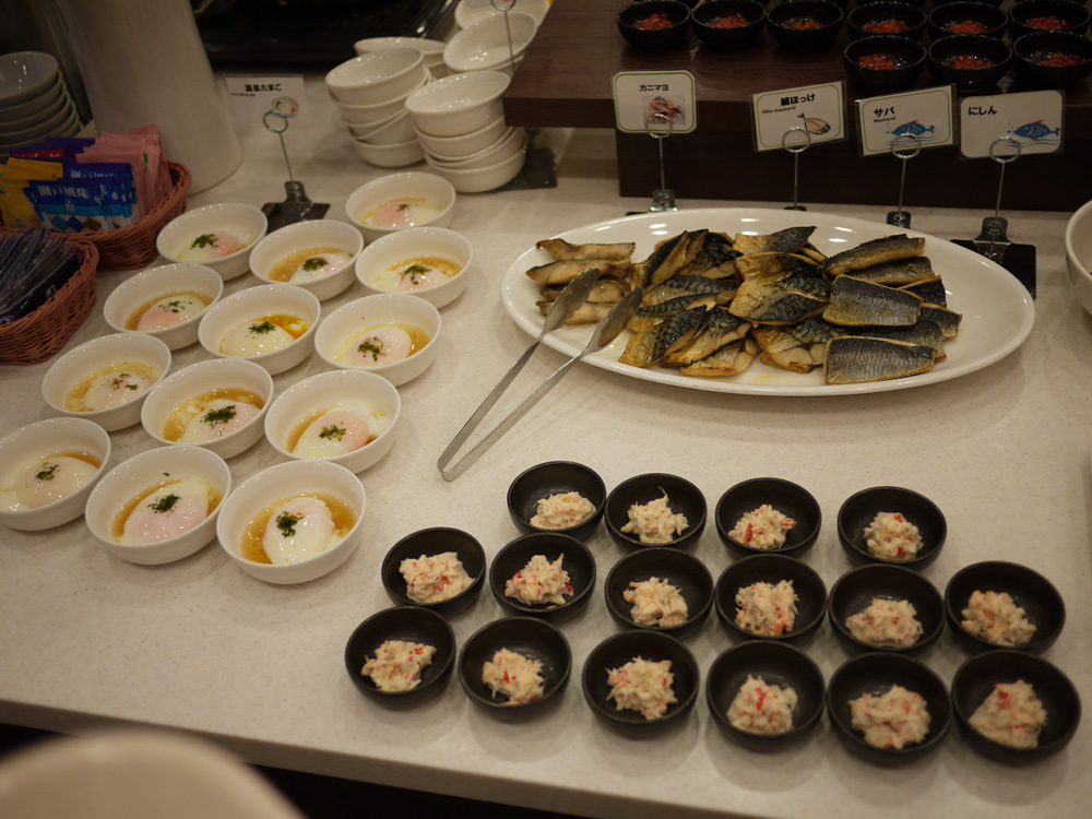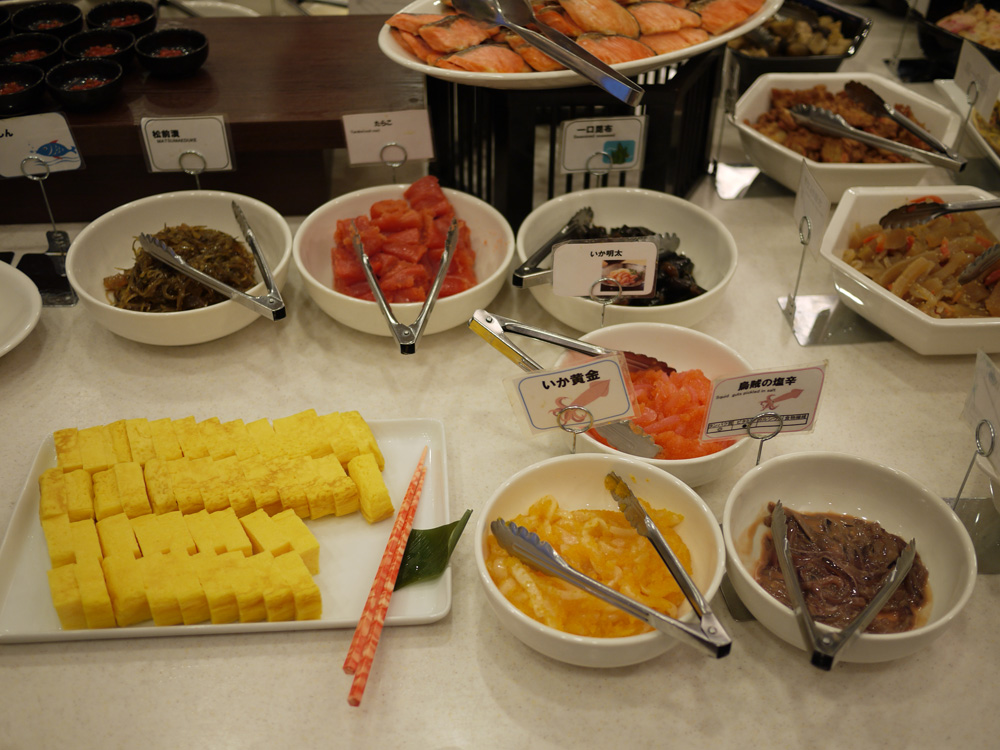 朝食はブッフェスタイル。和食とパンが豊富でした。