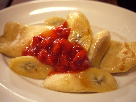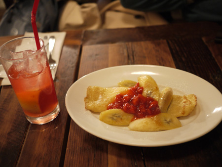「ソテーバナナとストロベリーのブリンツ」 ドリンクセット630円(単品430円)