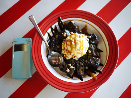 ですが甘いバニラアイスと更に甘いチョコ&キャラメルソースがあるので、