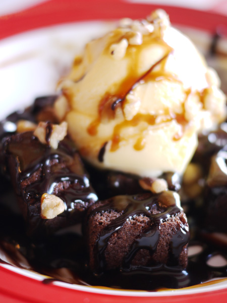 ほんのりあったかいブラウニーにひんやりバニラアイス・・・