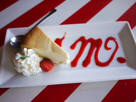 大き目のチーズケーキに謎の「m」の文字(笑)