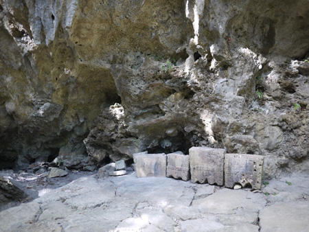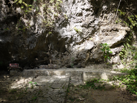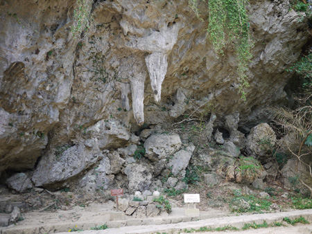 この2本の鍾乳石と三角の空間の突き当たりが拝所らしいです。
