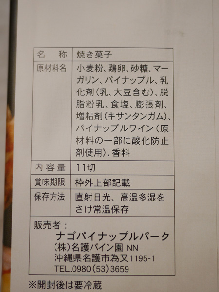 カステラとしては美味しいけど、「パイナップルワインのケーキ」を期待すると期待はずれかも(笑)