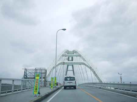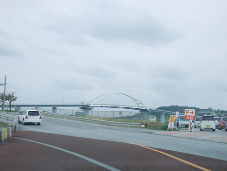 白いアーチが特徴の瀬底大橋という橋を渡っていきます。