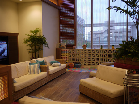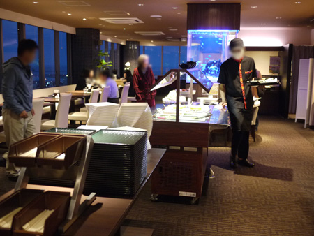 沖縄の朝は遅い・・・というわけで会場内が夜のレストランみたいな雰囲気になってますw