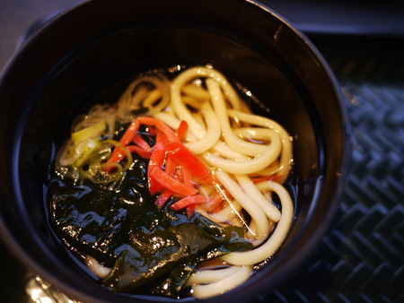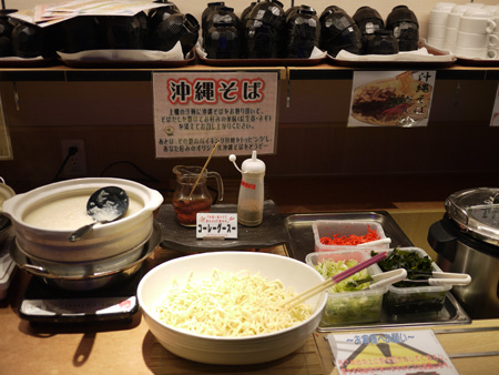 沖縄そば、麺は置いてあるやつなんでアレですけど、出汁が美味しかったです。