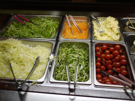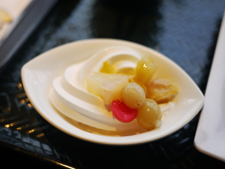 ドレッシング3種、フルーツポンチ、ヨーグルト
