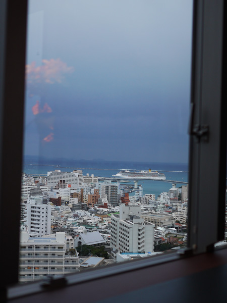 窓の向こうで、でっかい船が港に来てるのが見えました。