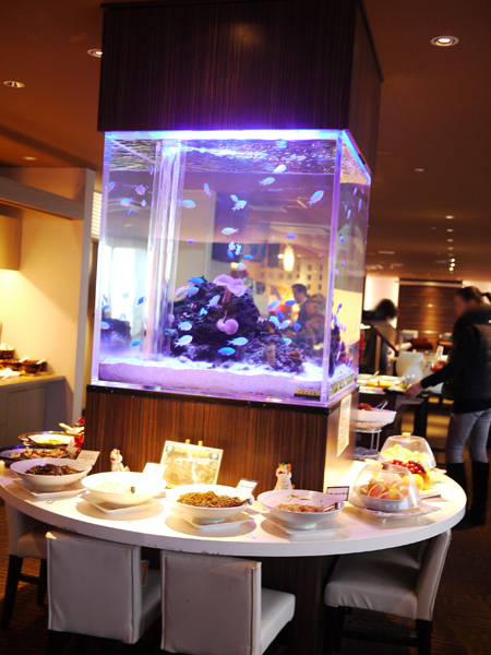 この大きな水槽の傍にはカフェがあって、座りながらジンベイザメを見ることができるみたいですよ。