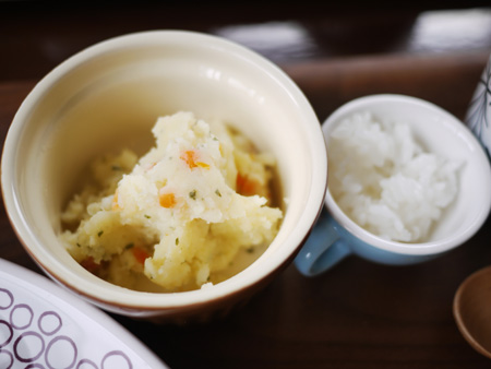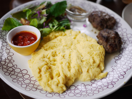 卵はスクランブルエッグにしました。ふわふわんとしています。