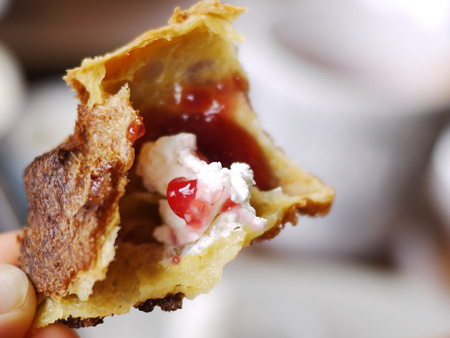 添えられたクリームチーズと苺ジャムとつけて食べると・・・