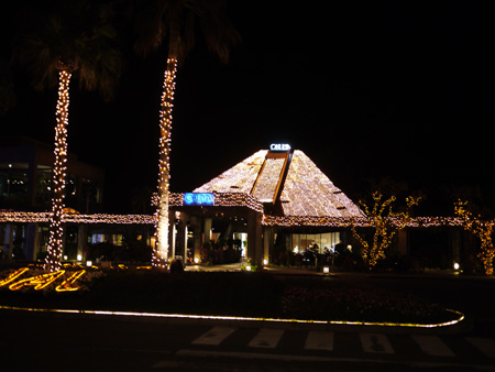 夜になるとライトアップされて、桜祭りが開催されるみたいです。