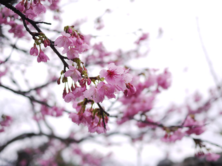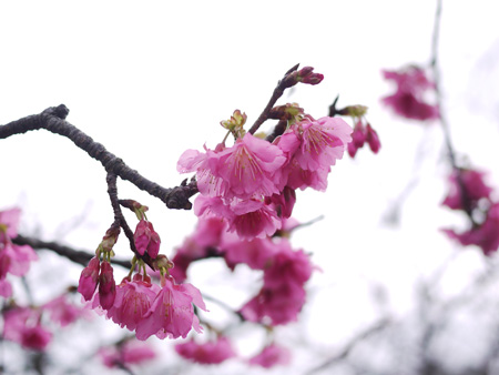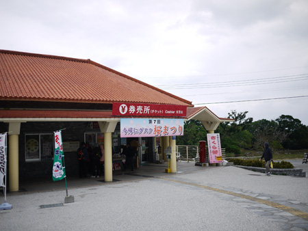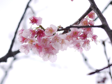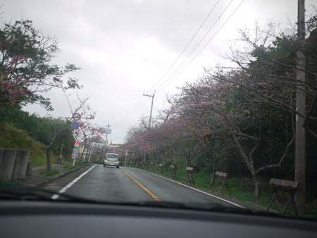今帰仁城跡では早咲きの桜が見れるらしいとは聞いていたのですが、道路でも咲いてました。