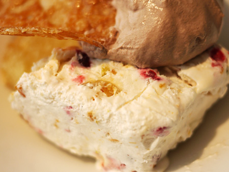 アイスにはオレンジピールやピスタチオ、ベリーやキャラメルリボンが混ぜ込んであって、
