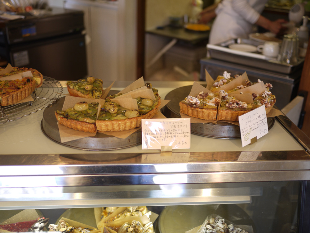 ショーケースの上には季節のタルトが置かれていました。