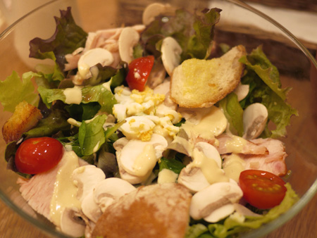 家族から食事(パスタ?)はいまいちと聞いていたけど・・・果たしてサラダはどうかな?
