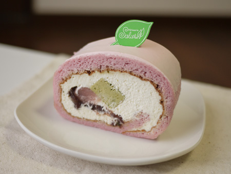 桜風味のスポンジは桜餅風で、少し塩気があって美味しい!