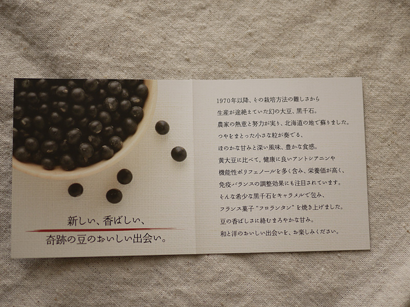 黒千石という大豆をキャラメルで包んでアーモンドと一緒に焼き上げた、
