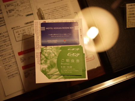 ルームキーと朝食券はこんな感じ。