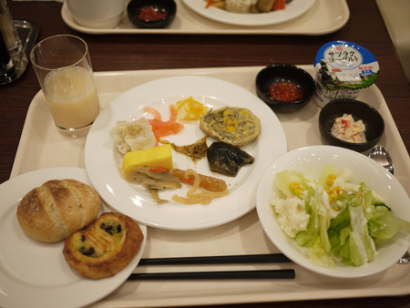 朝食はブッフェスタイル。和食とパンが豊富でした。