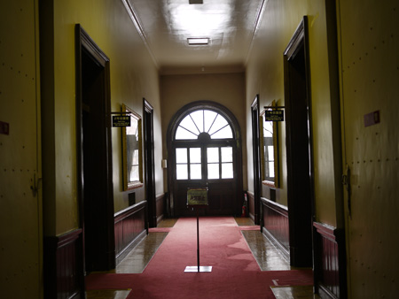 このホテルはフロント前のエレベーターと大浴場へは、