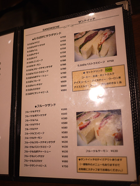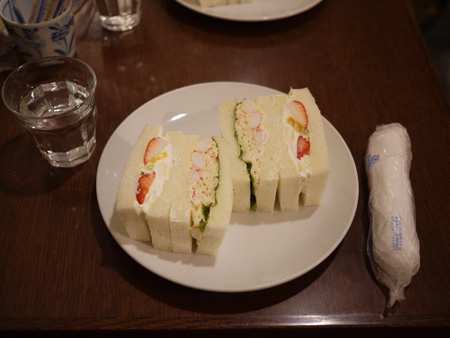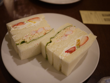 さてこちらが注文した、たらば&フルーツサンド 780円。