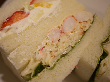 お目当てはこちらの看板商品(?)のタラバとフルーツのサンドイッチ!