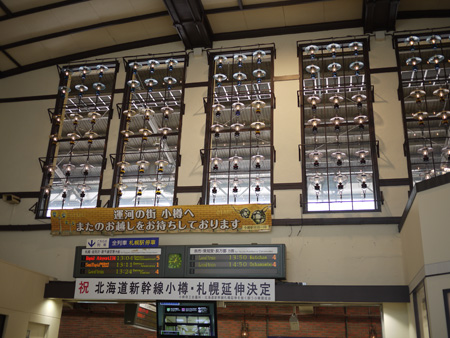 小樽駅はちょっとレトロ風で、駅の明かりもこんなおしゃれなランプでした。