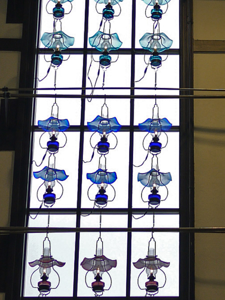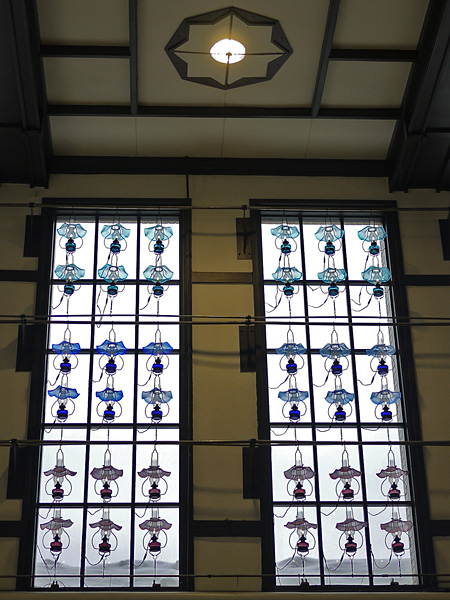 ステンドグラス風に飾られたランプが綺麗だなー。